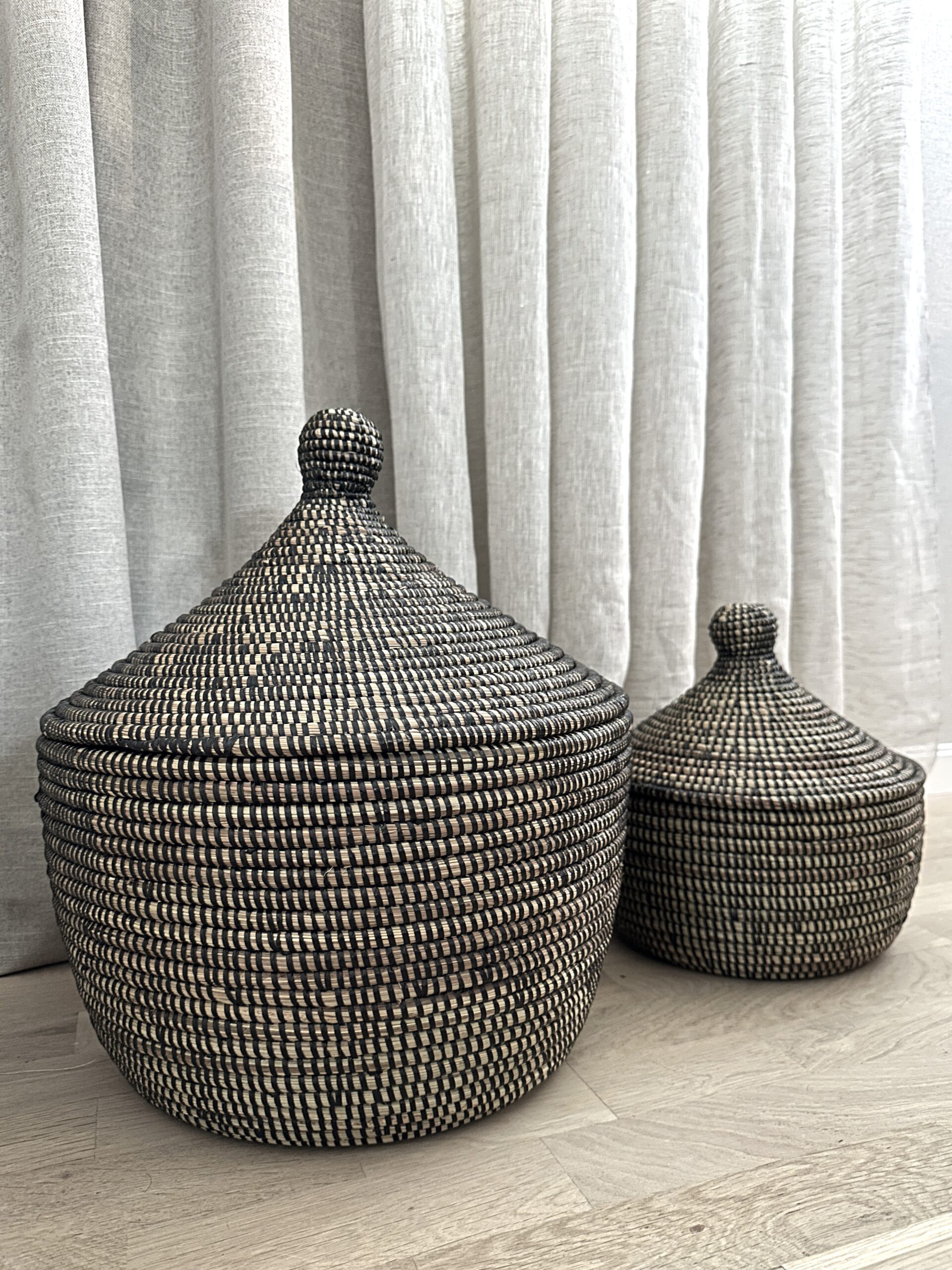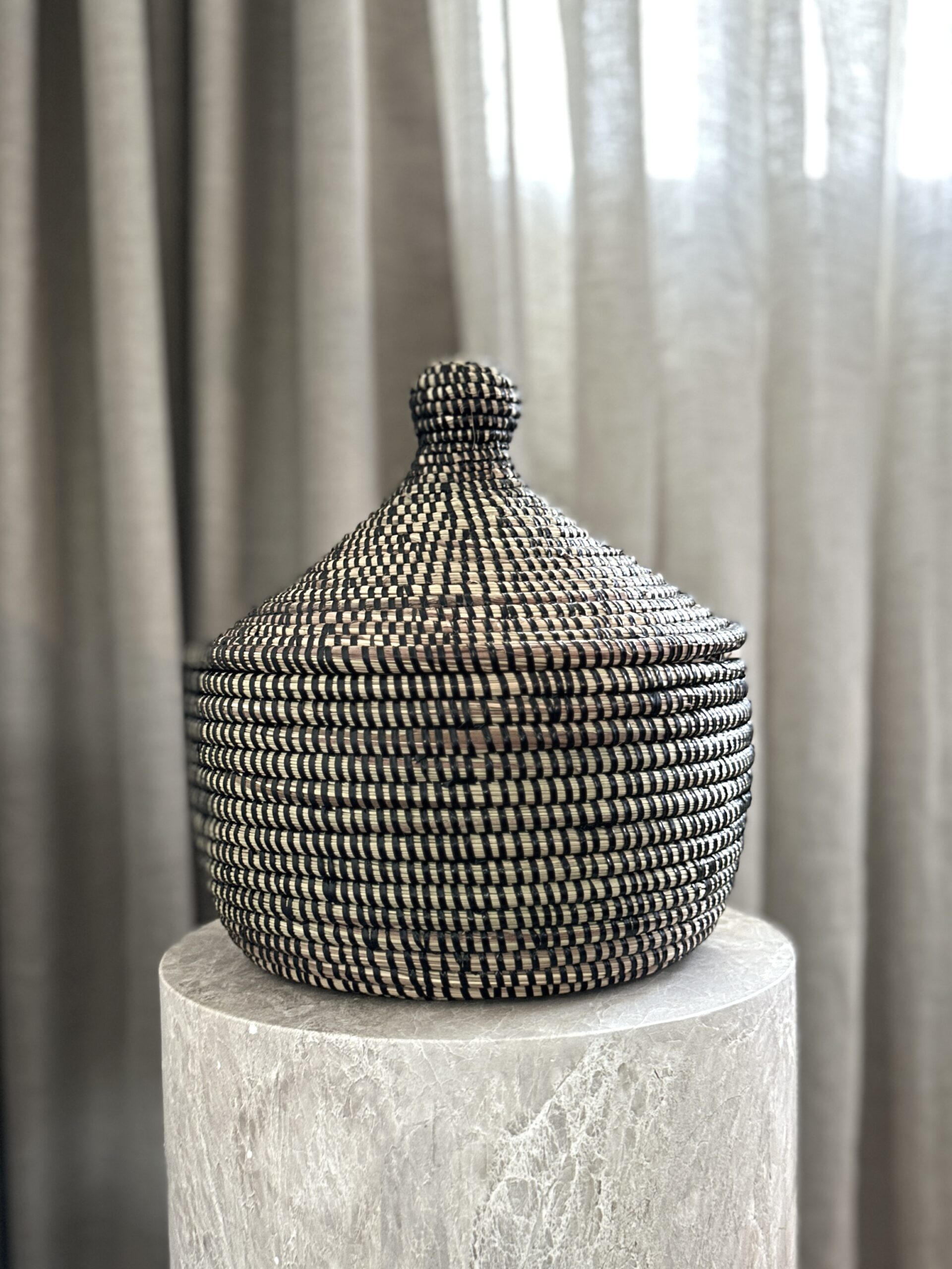 Afrikansk kurv interiørkurv med sultan lokk – sort-medium