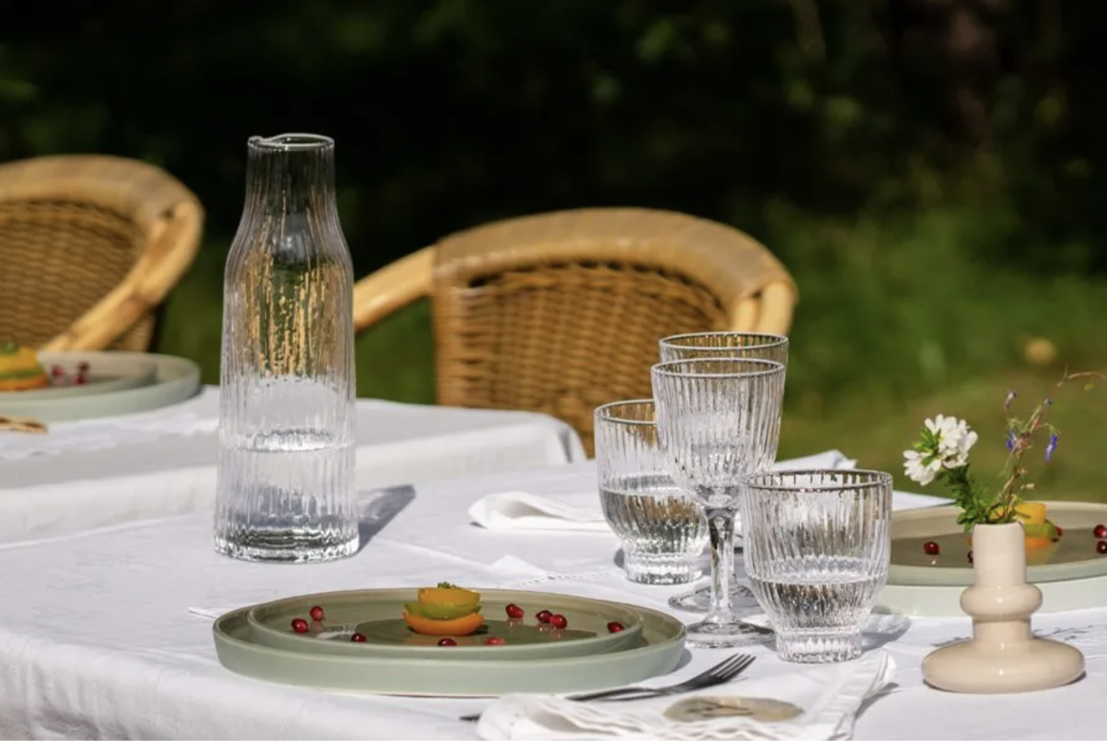 Det bølgete designet er inspirert av det krusede mønsteret du ser i vann og sand formet av vinden. Glasskolleksjonen er tilgjengelig i flere farger. Miks og match som du vil. Passer nydelig til keramikk servicet også.