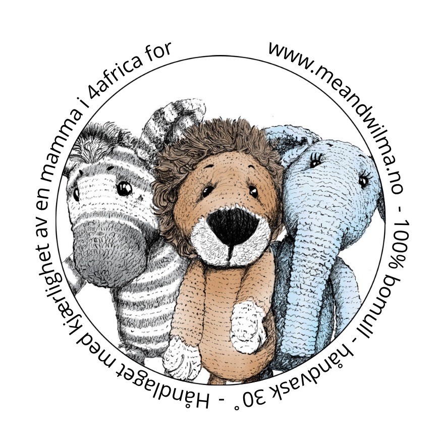 Dyrene er et 100% ugandisk produkt fra organisasjonen 4Africa. De er heklet av mammaer med iver og kjærlighet, Bomullen er fra Uganda og kan håndvaskes på 30 grader.
