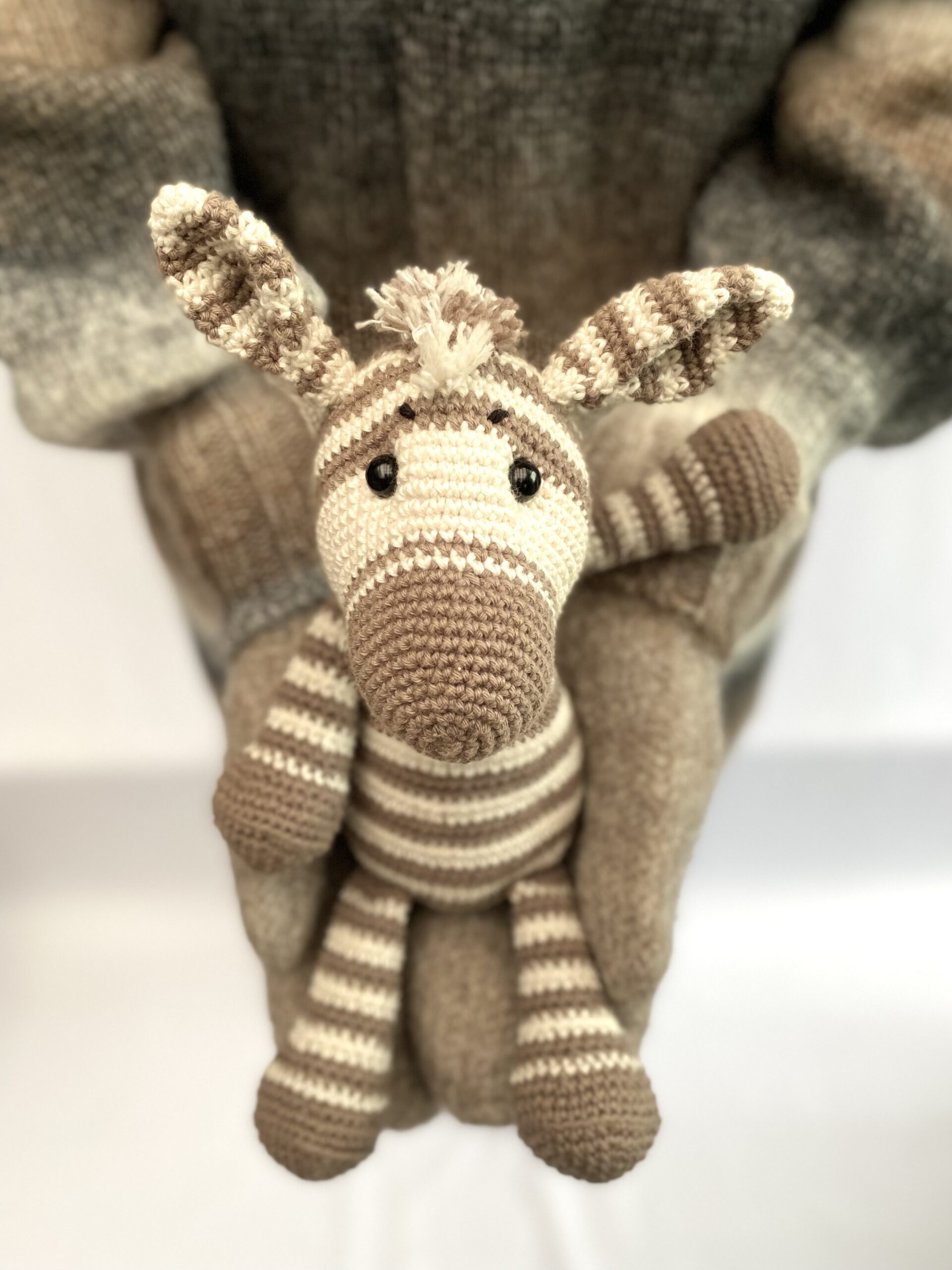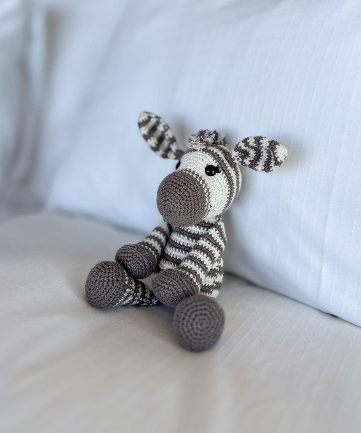 Kosedyr Zebbe Zebra – en søt liten heklet sebra. Dyrene er et 100% ugandisk produkt fra organisasjonen 4Africa. De er heklet av mammaer med iver og kjærlighet, og ikke en blir lik den andre.