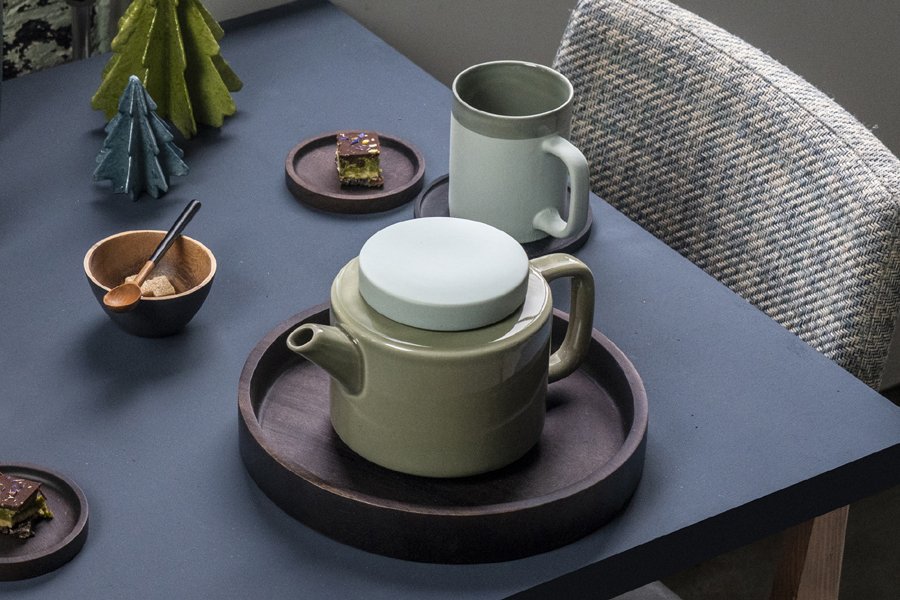 Vi er stolte av vår Cyl-kolleksjon, håndlaget i Vietnam, designet av Kinta og ‘fair trade’. Den er funksjonell, den er laget i steinware, den er sylinderformet og den passer perfekt til våre treprodukter.