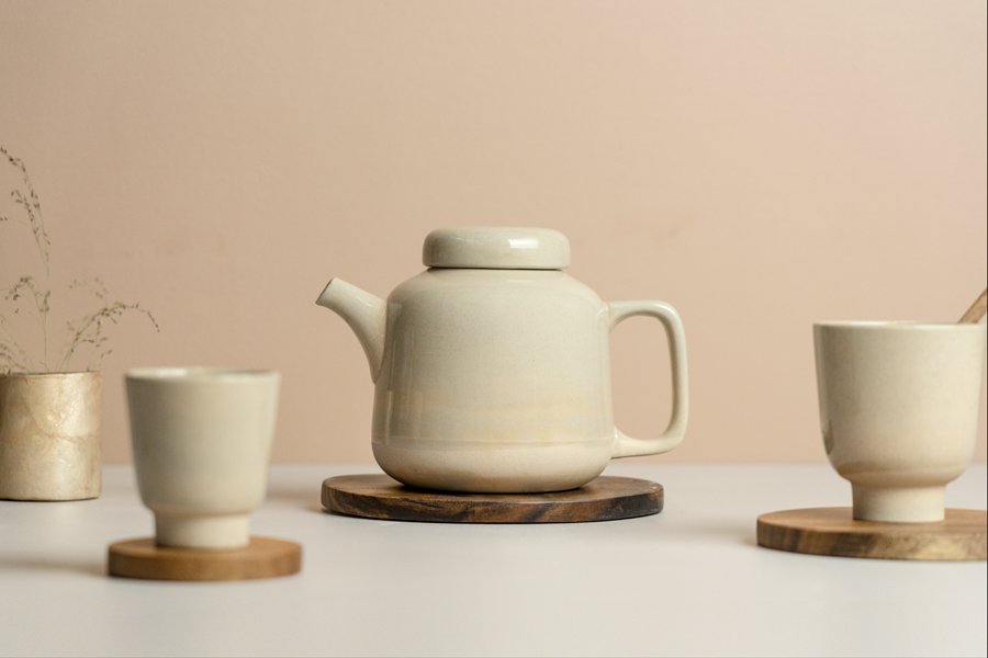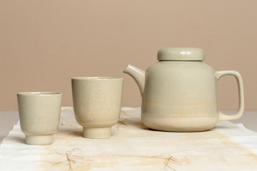 Vi er stolte av vår keramikkkolleksjon Rutunda, håndlaget i Vietnam, designet av Kinta og ‘fair trade’. Den er funksjonell, det er steintøy, den har rundaktig form og den passer perfekt til våre treprodukter.  Den har et moderne design med et naturlig sandutseende. Den er laget av naturlig leire. Sandkornene dukker noen ganger gjennom glasuren som små svarte flekker som en reaksjon på den høye brenne temperaturen. Hver gjenstand er unik. Keramikken er laget i en keramikkverksted i Hanoi, drevet av den åttende generasjonen av familien. Keramikeren bruker lokale ressurser og blander selv de (ikke-giftige) fargene. Disse matsikre produktene blir brent ved høye temperaturer, noe som gjør dem trygge for oppvaskmaskin og mikrobølgeovn.